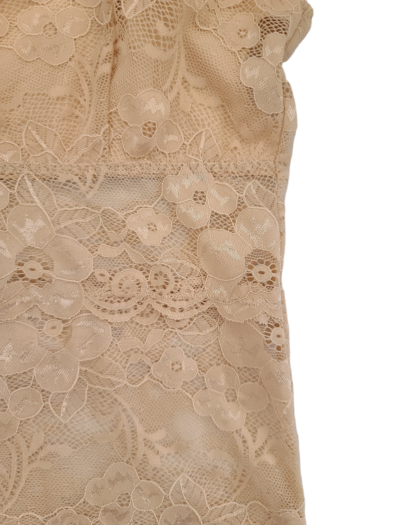 Beautiful flirty pink top with openwork lace, vintage, transparent. Small ribbon bows on the straps.