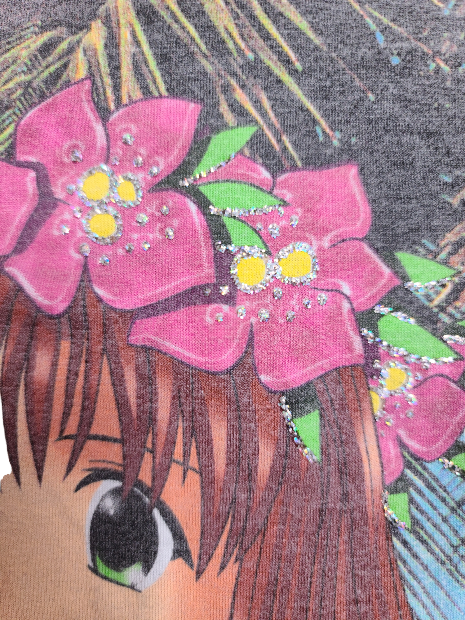 Beautiful manga print top with sequins, vintage from the 2000s. Indie style. Exclusive model. "Aloha" series.