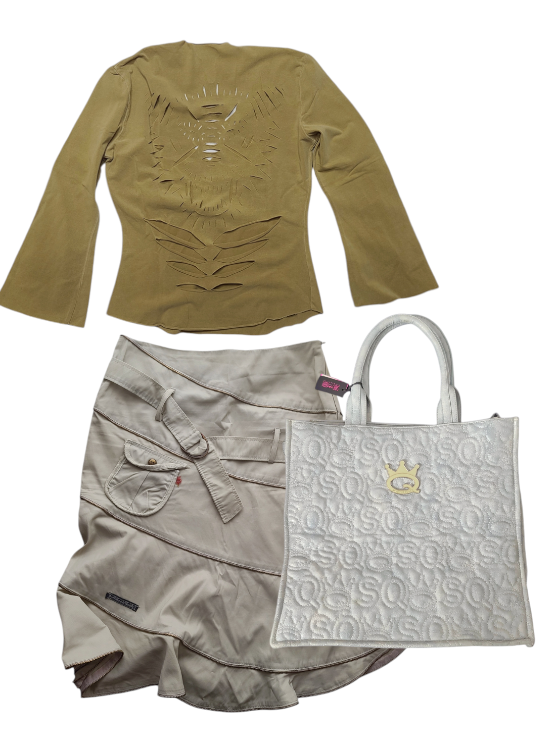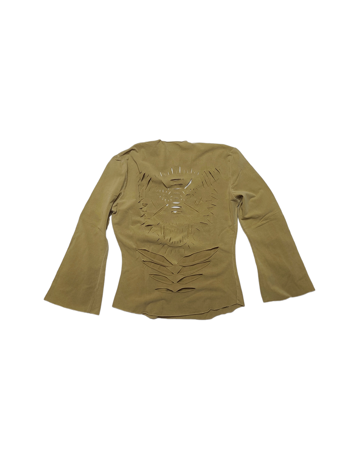 1. Very nice vintage long sleeve khaki top, cybery2k, archive destroy acubi. Neutral styling.