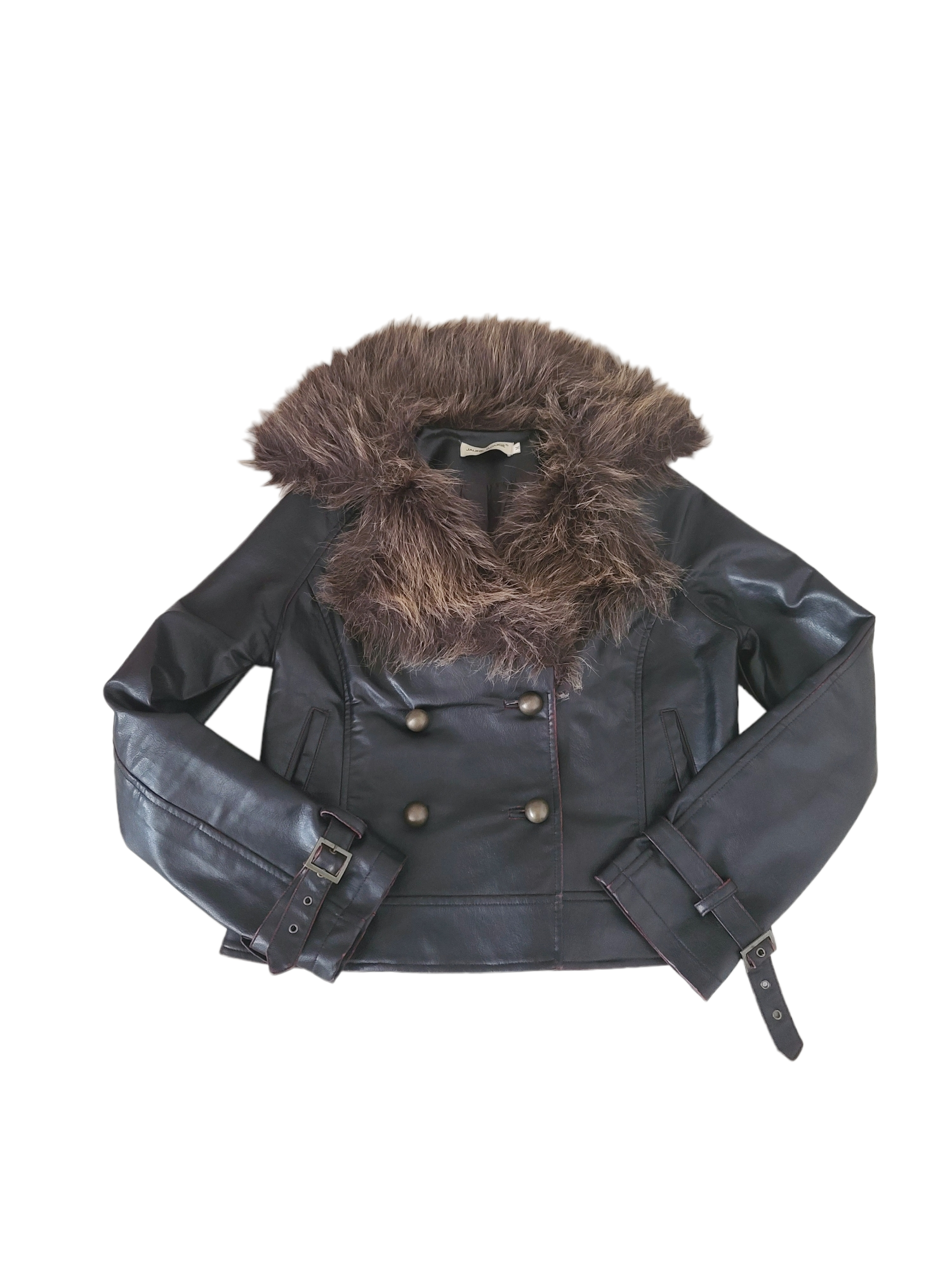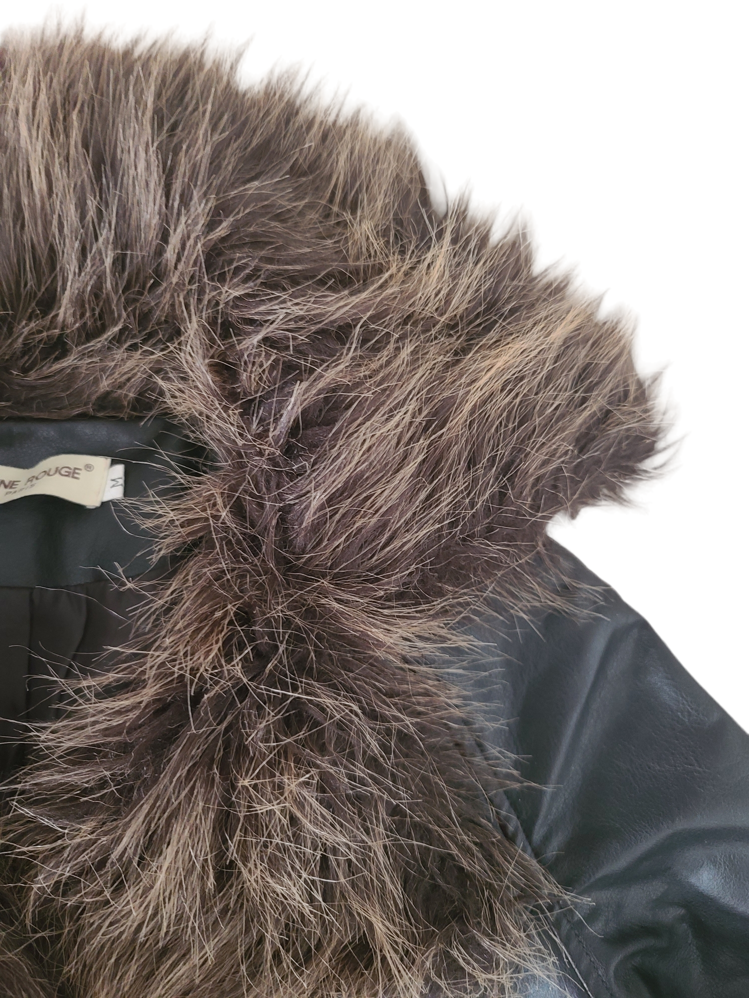 Incredible vintage black cybery2k jacket in faux leather, with faux fur collar.