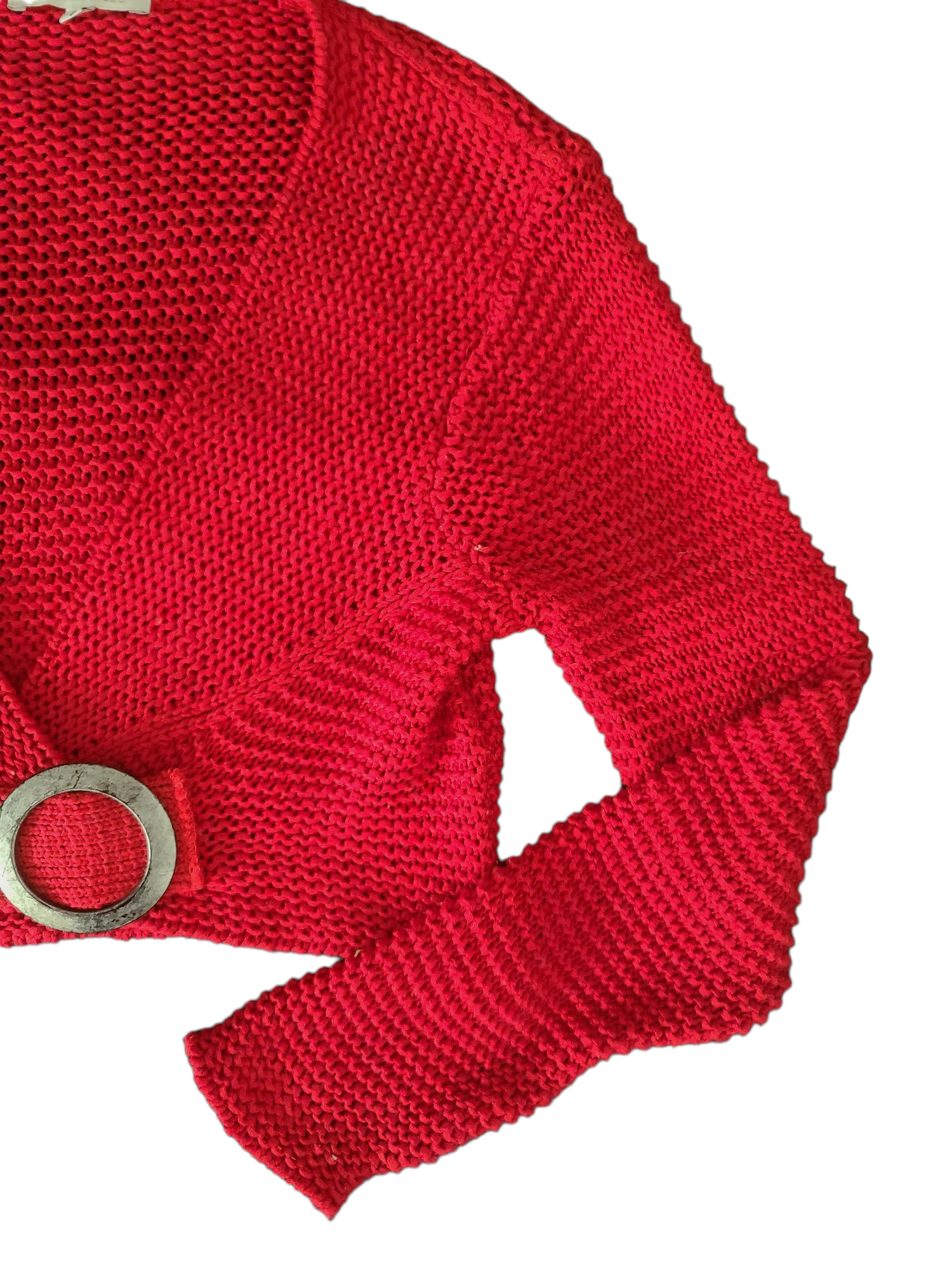 Very beautiful red crochet bolero from the 2000s, y2k style with flared sleeves and buckle.