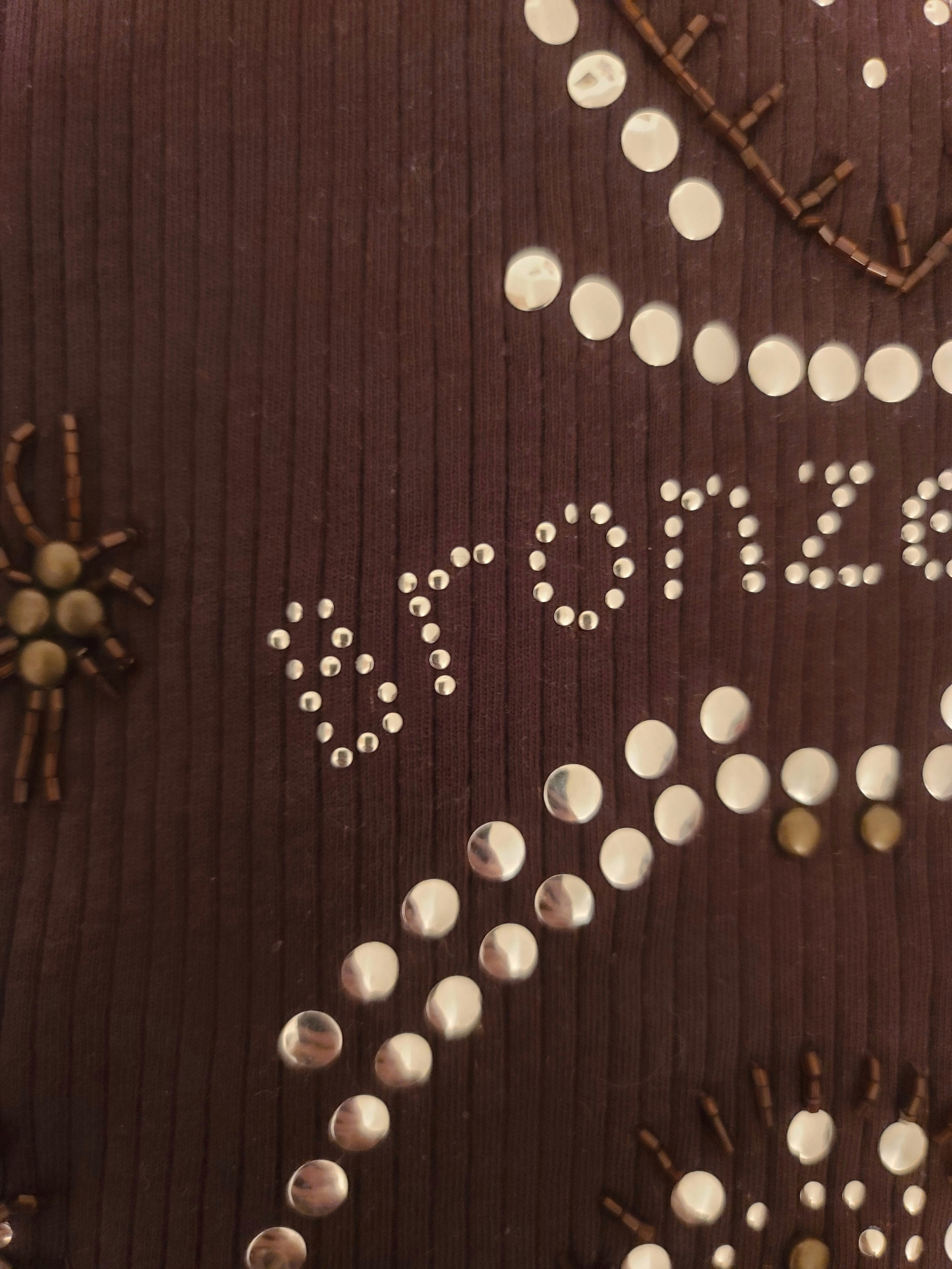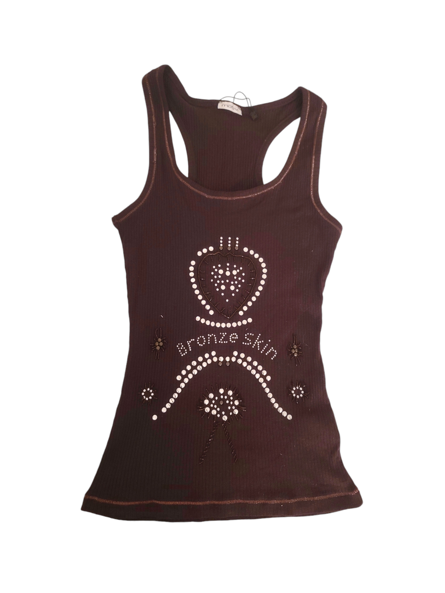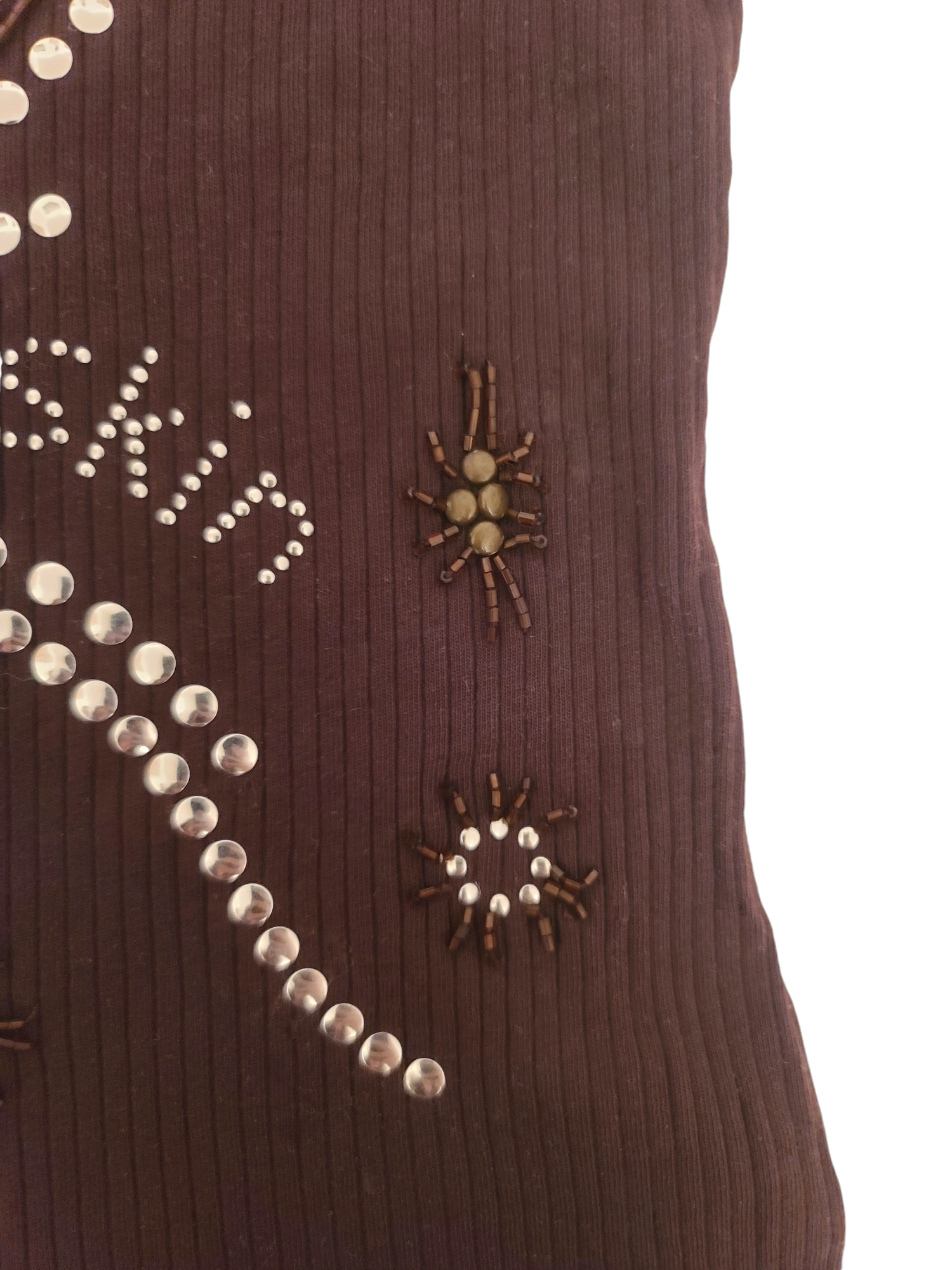 Very beautiful vintage ribbed brown gyaru rhinestones tank top with studs and pearls