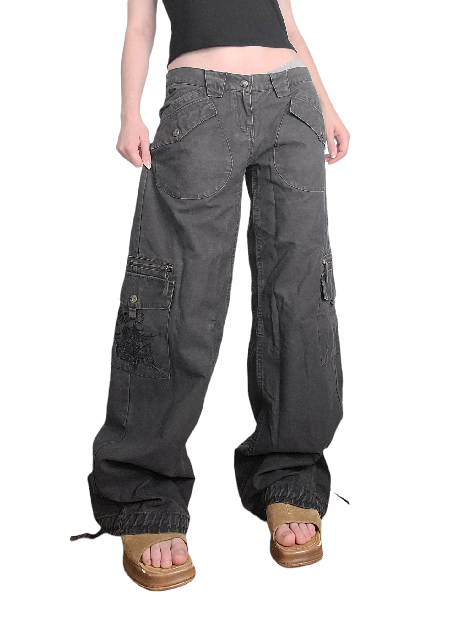Incroyable baggy cargo noir grunge, des années 90, skater, épais avec multipoches. Cordons de serrage aux chevilles.