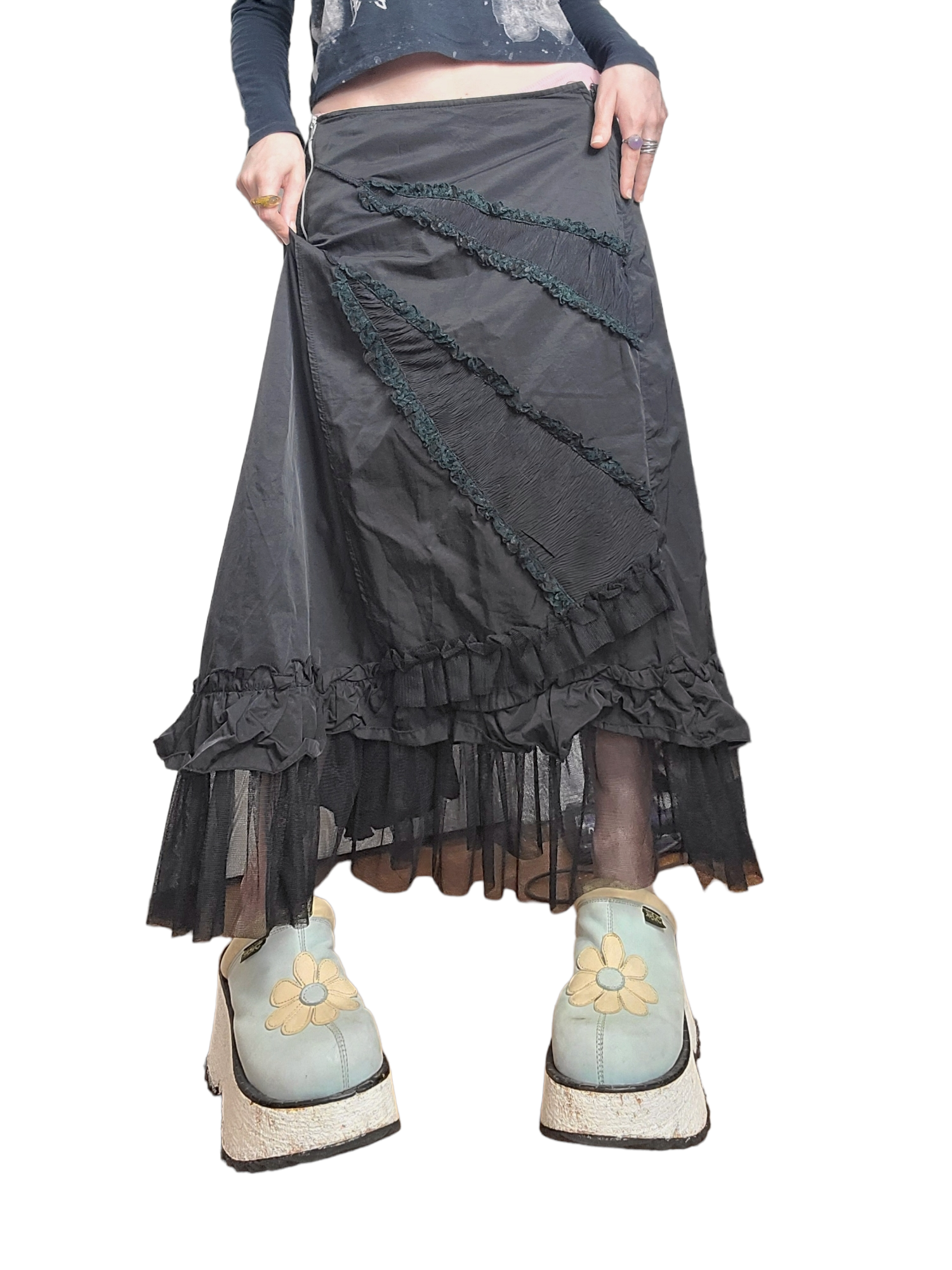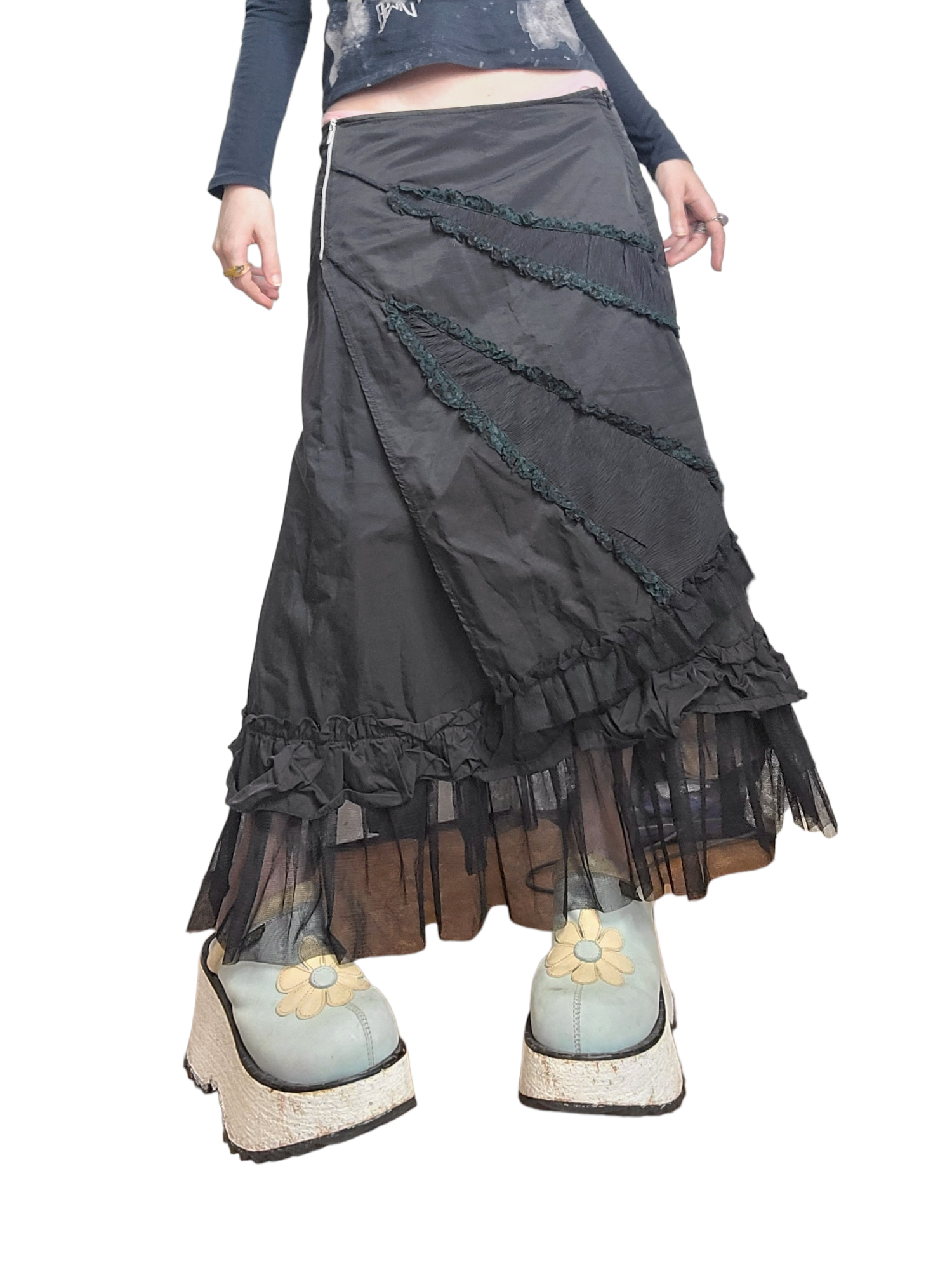Magnifique jupe longue noire y2k harajuku à volants et fronçage. Fairygrunge archive.