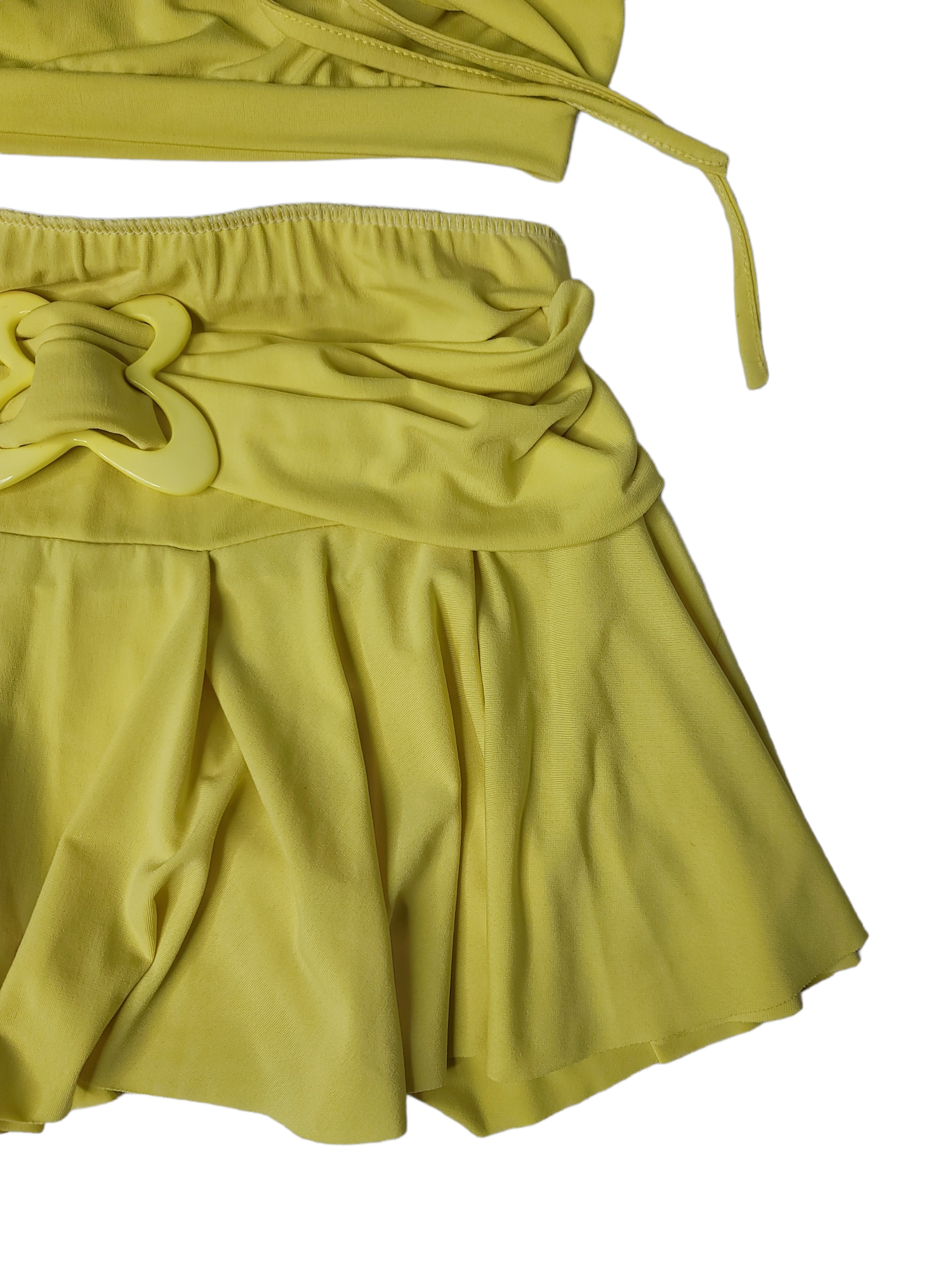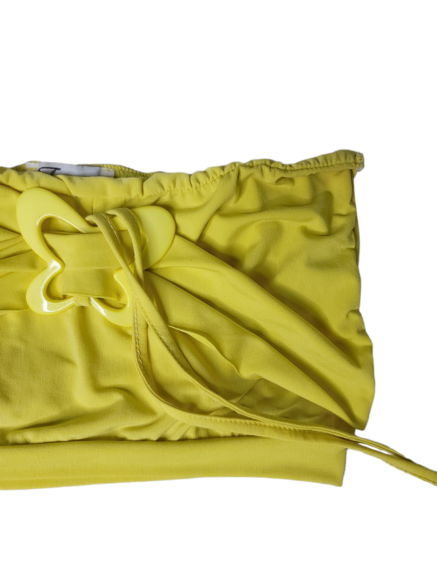 Sublime ensemble jaune des années 2000, y2k aesthetic vibe. Top brassière + jupe à volant, détails papillon. Pièce rare. Attention la couleur semble verte sur la photo, mais l'ensemble est bien jaune. Bratz style.