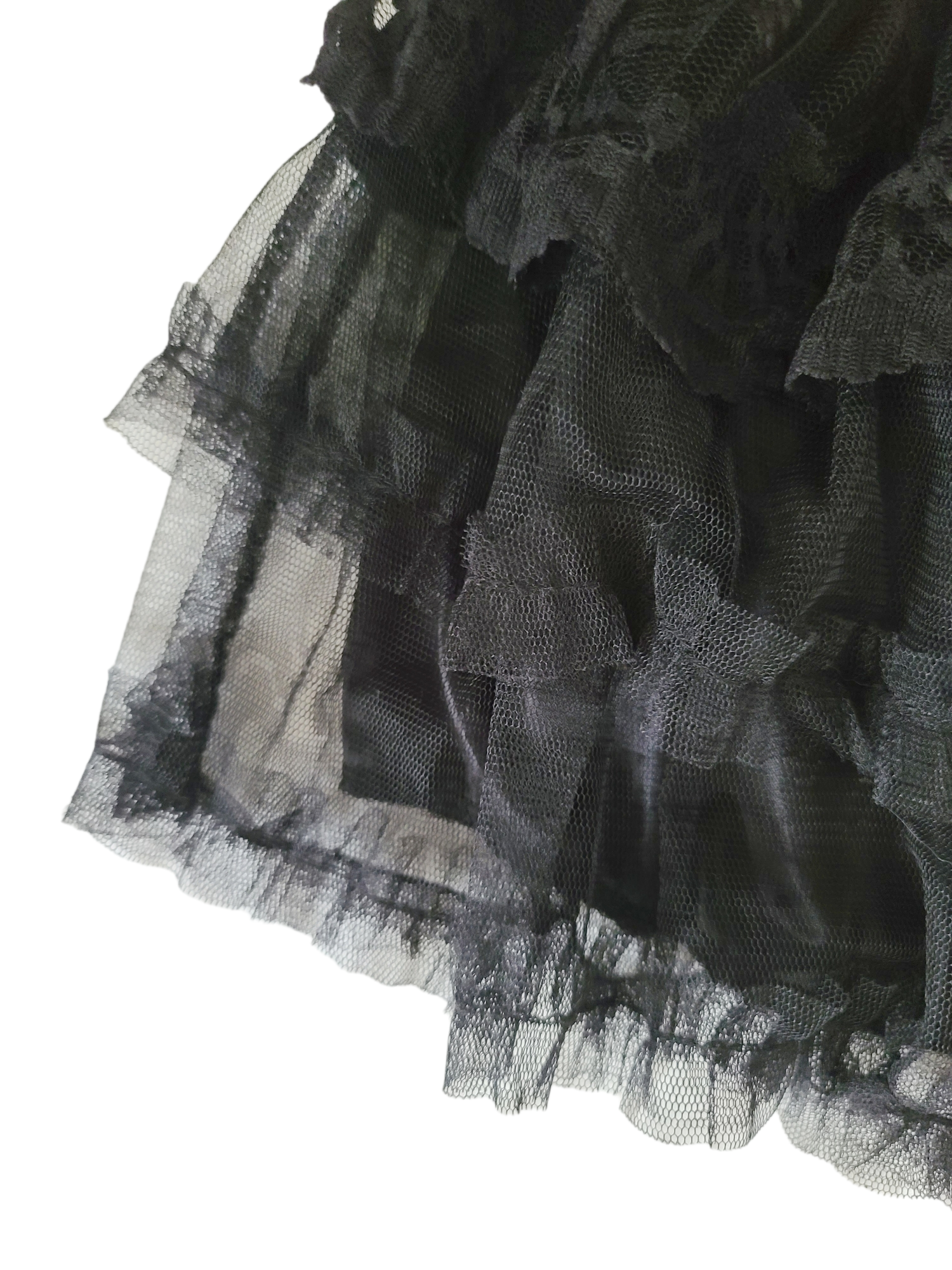 Magnificent short y2k kawaii romantic black ruffled lace skirt, flirty details with ribbons. Harajuku archive.