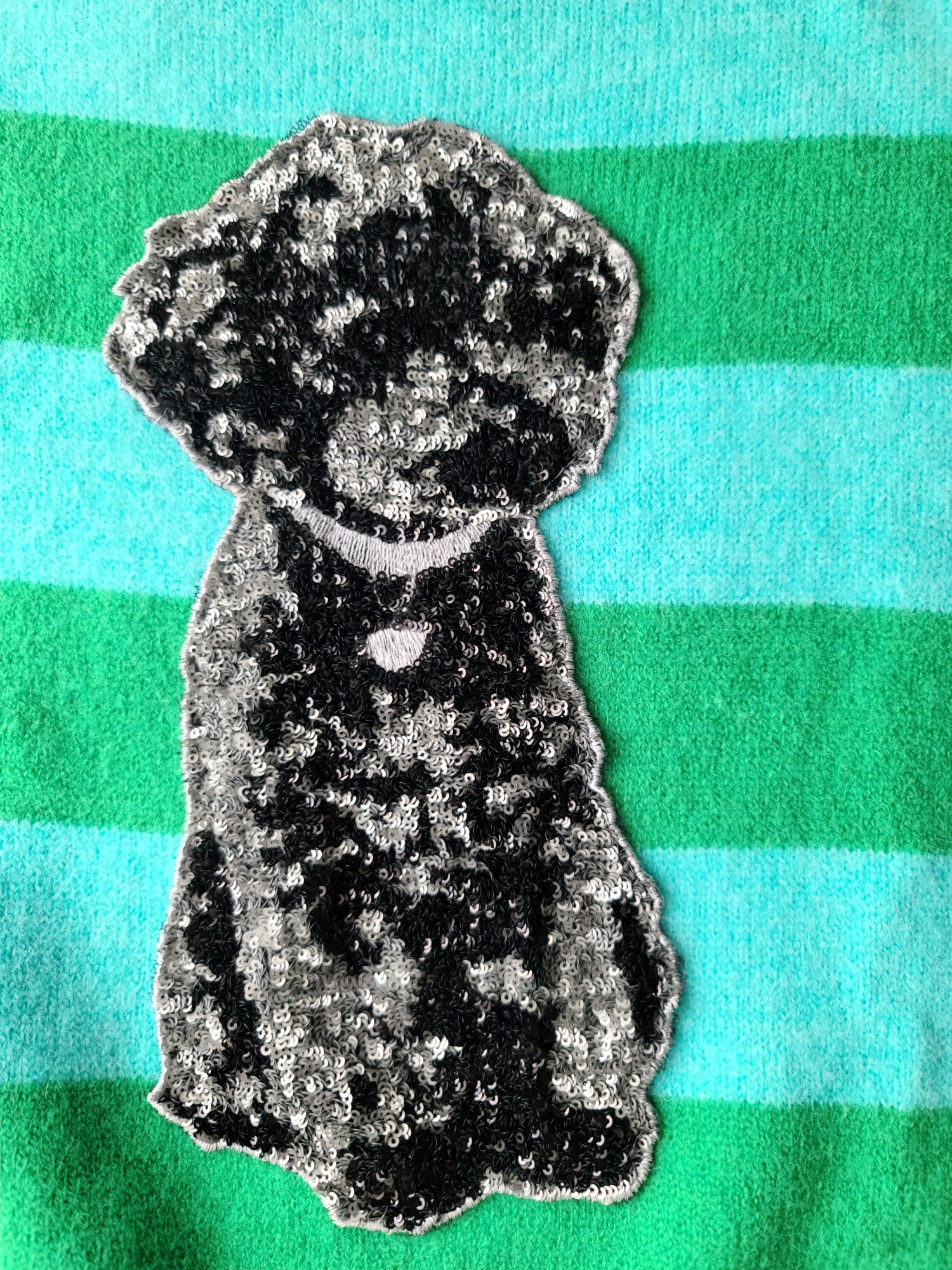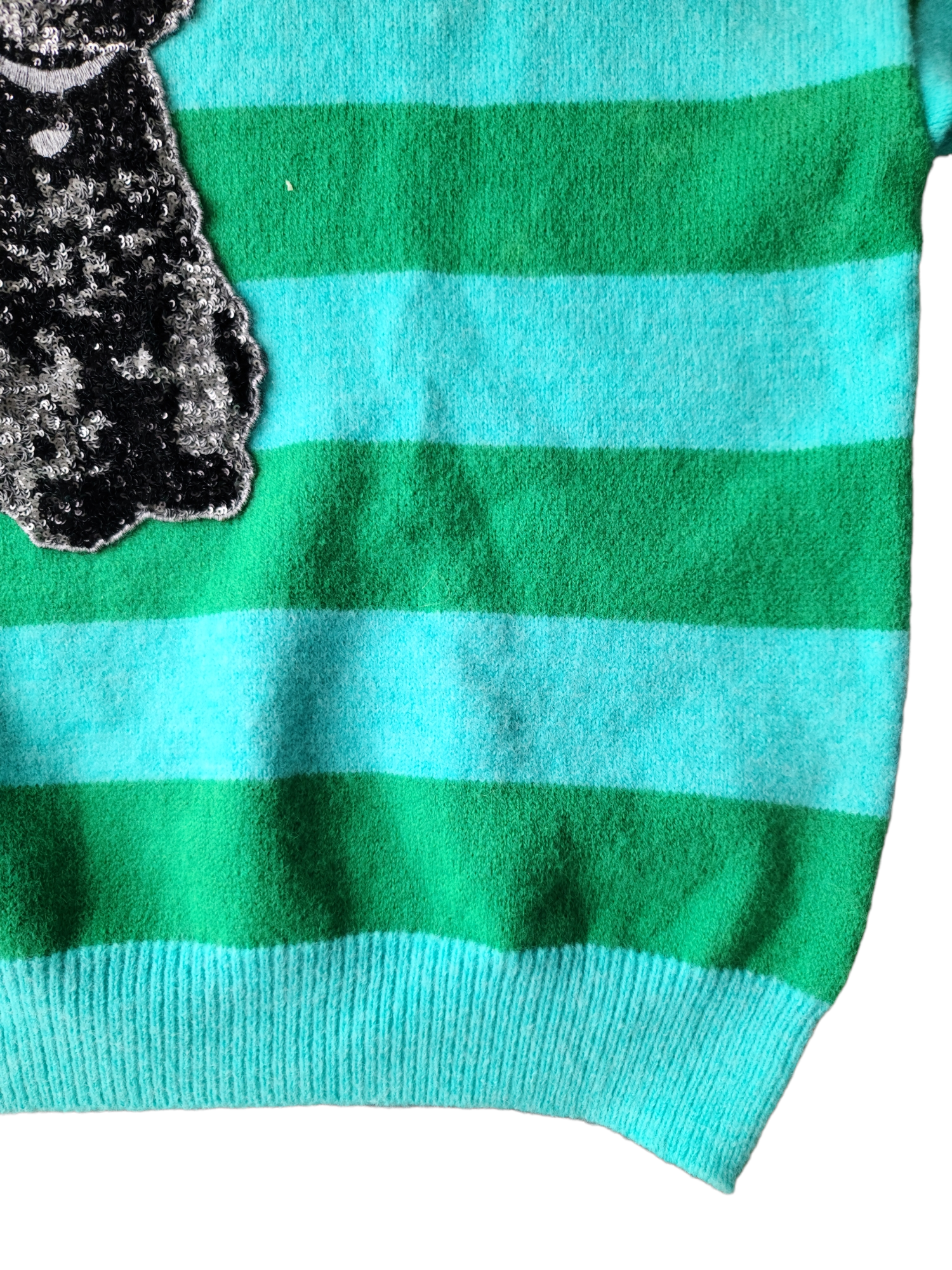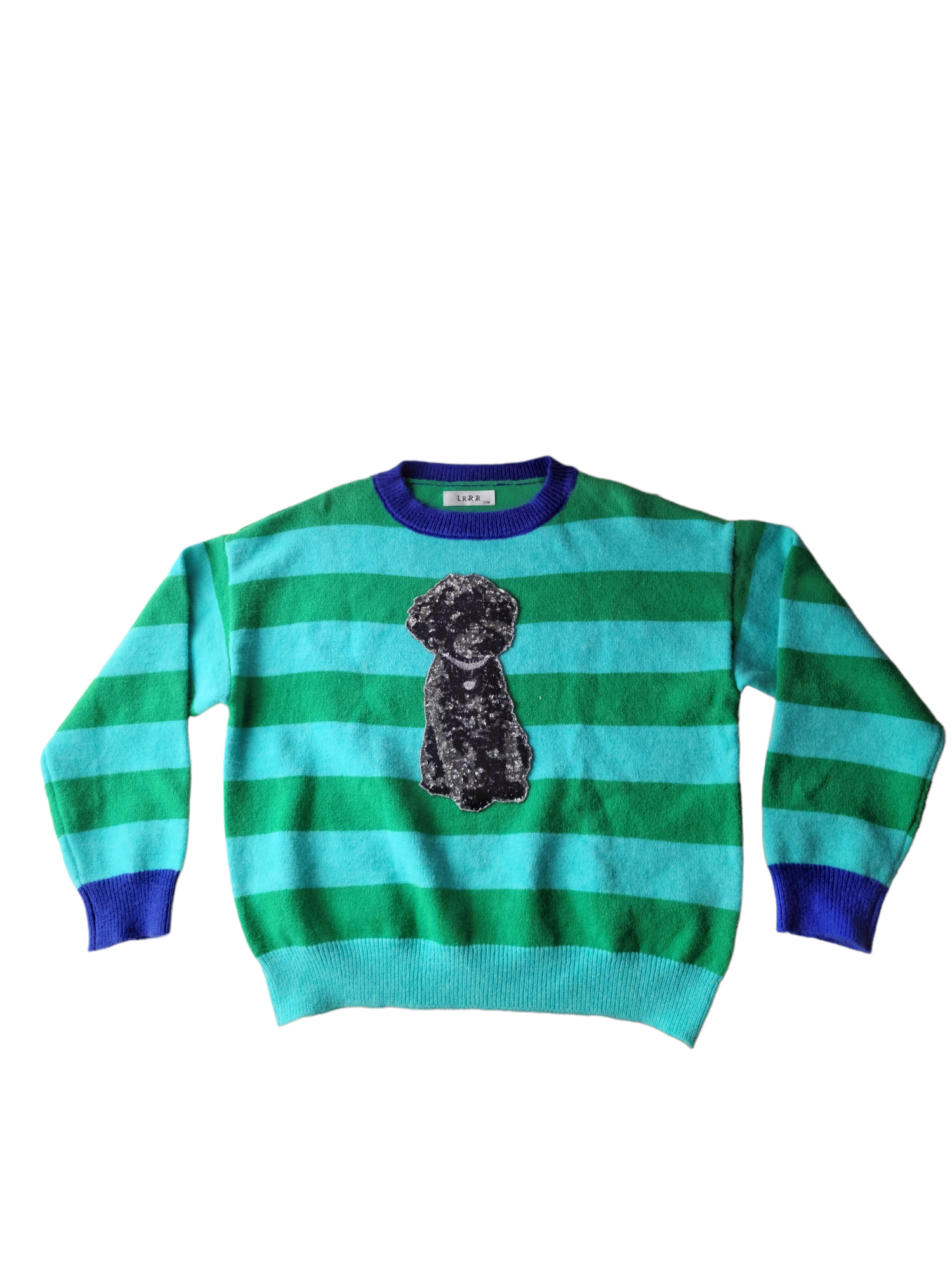 Magnifique pull vintage des années 2000 fancy pastel, rayures et chien en strass en relief. acubi korean style.