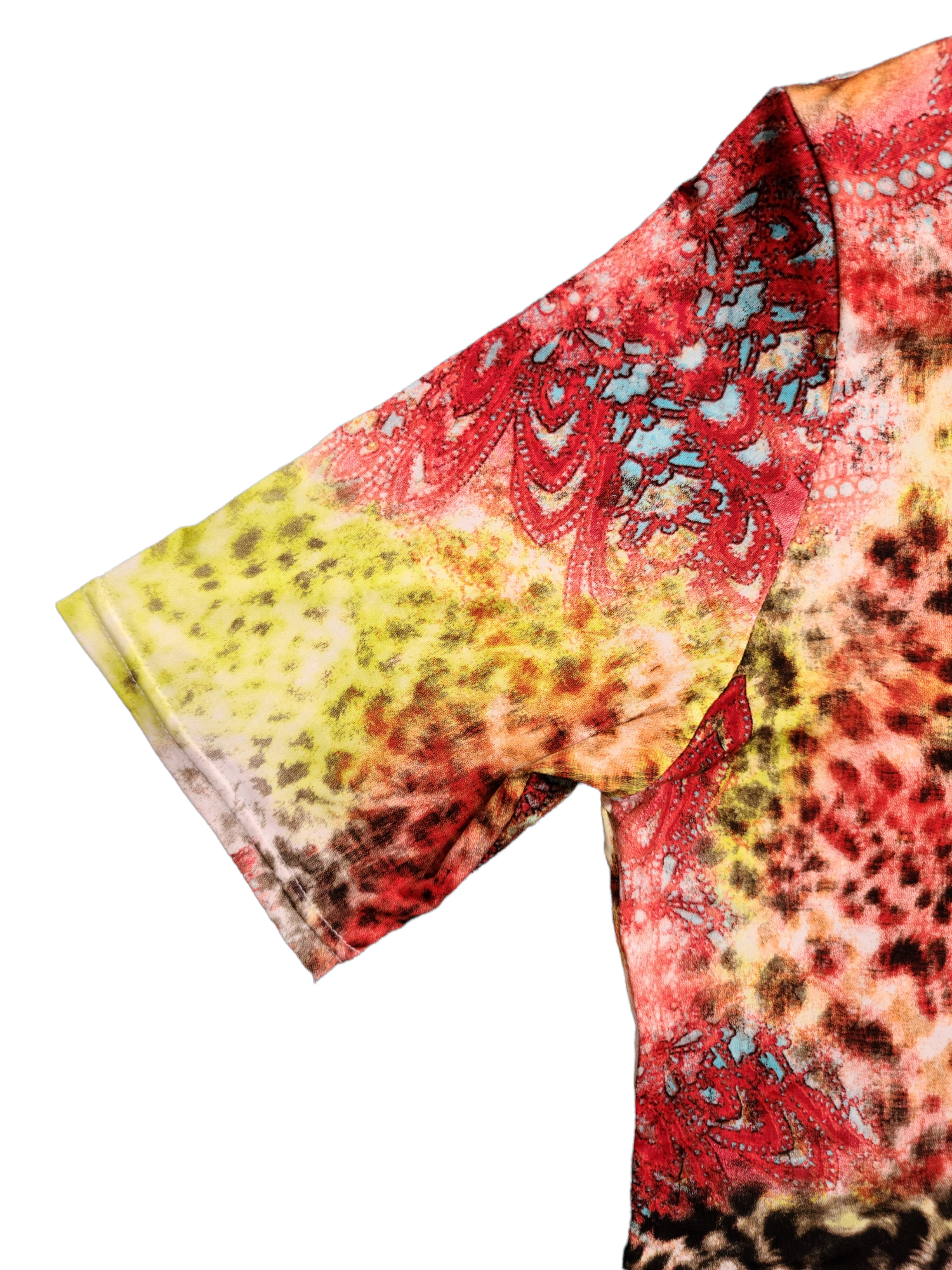 Beau top stretch vintage des années 2000, motif coloré, abstrait. Épaulettes.