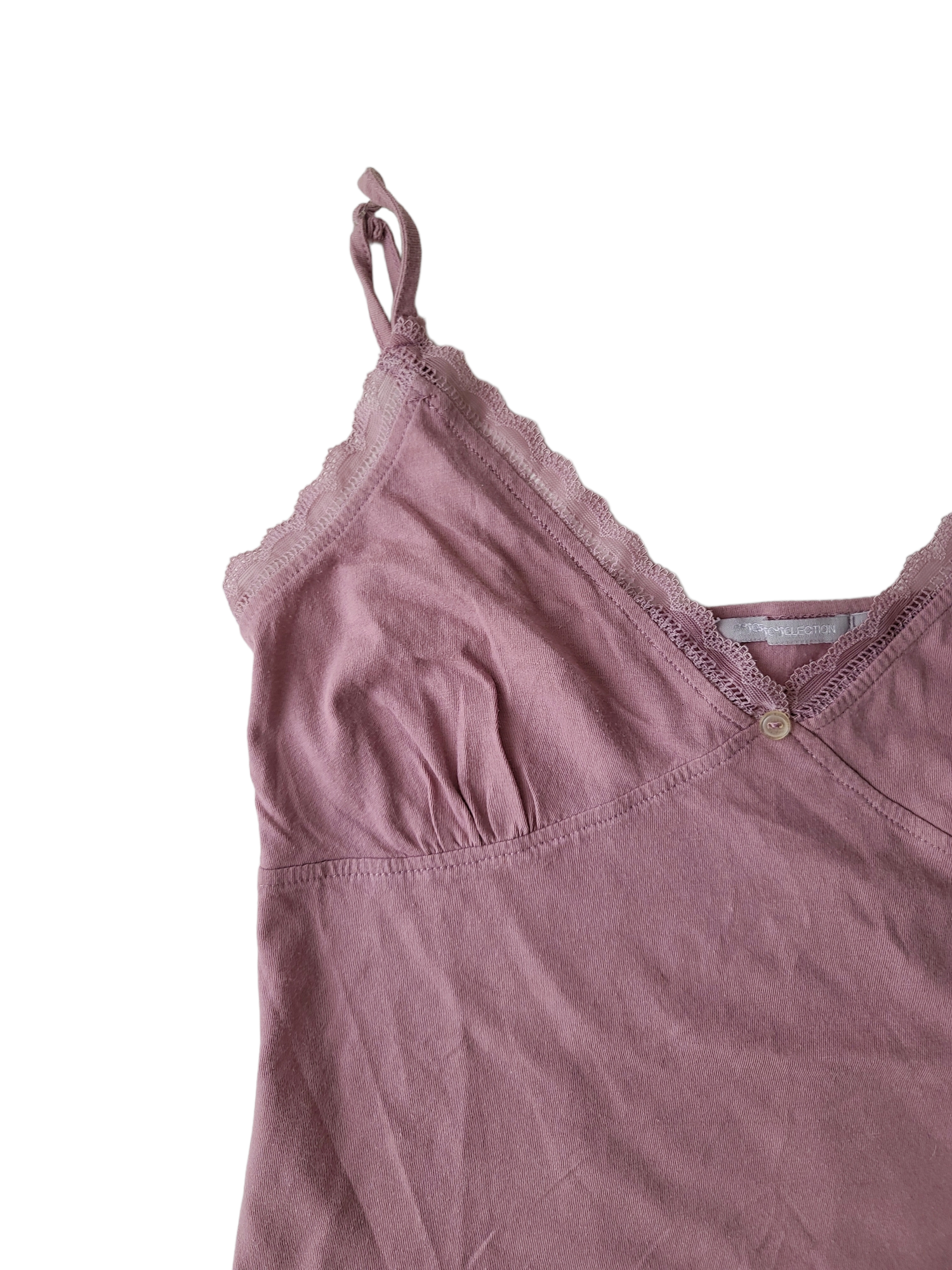 Beautiful pretty balletcore mauve strappy top with lace, fluid cut.