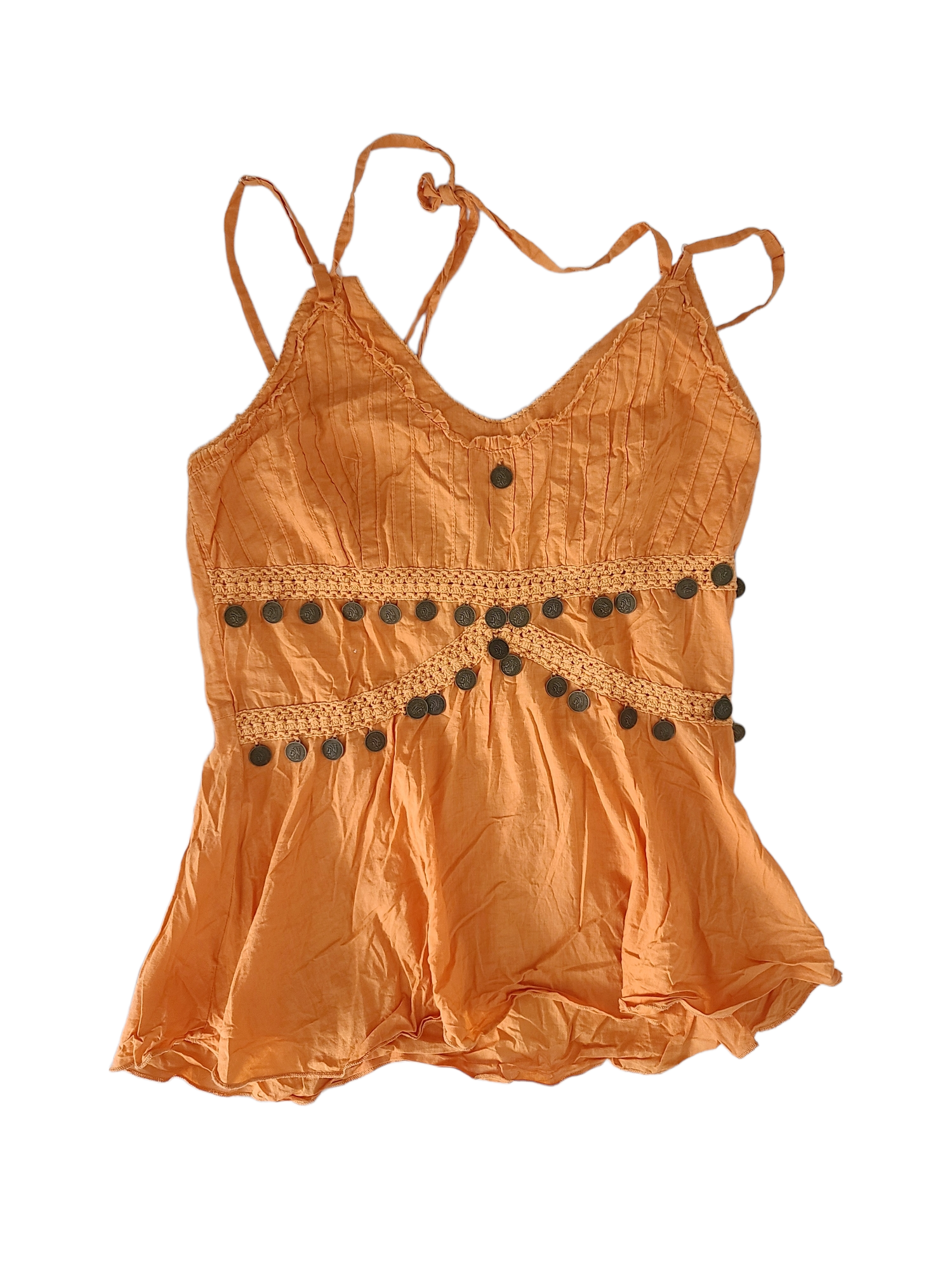 Very beautiful y2k top backless orange bohemian fairycore tank top with medals