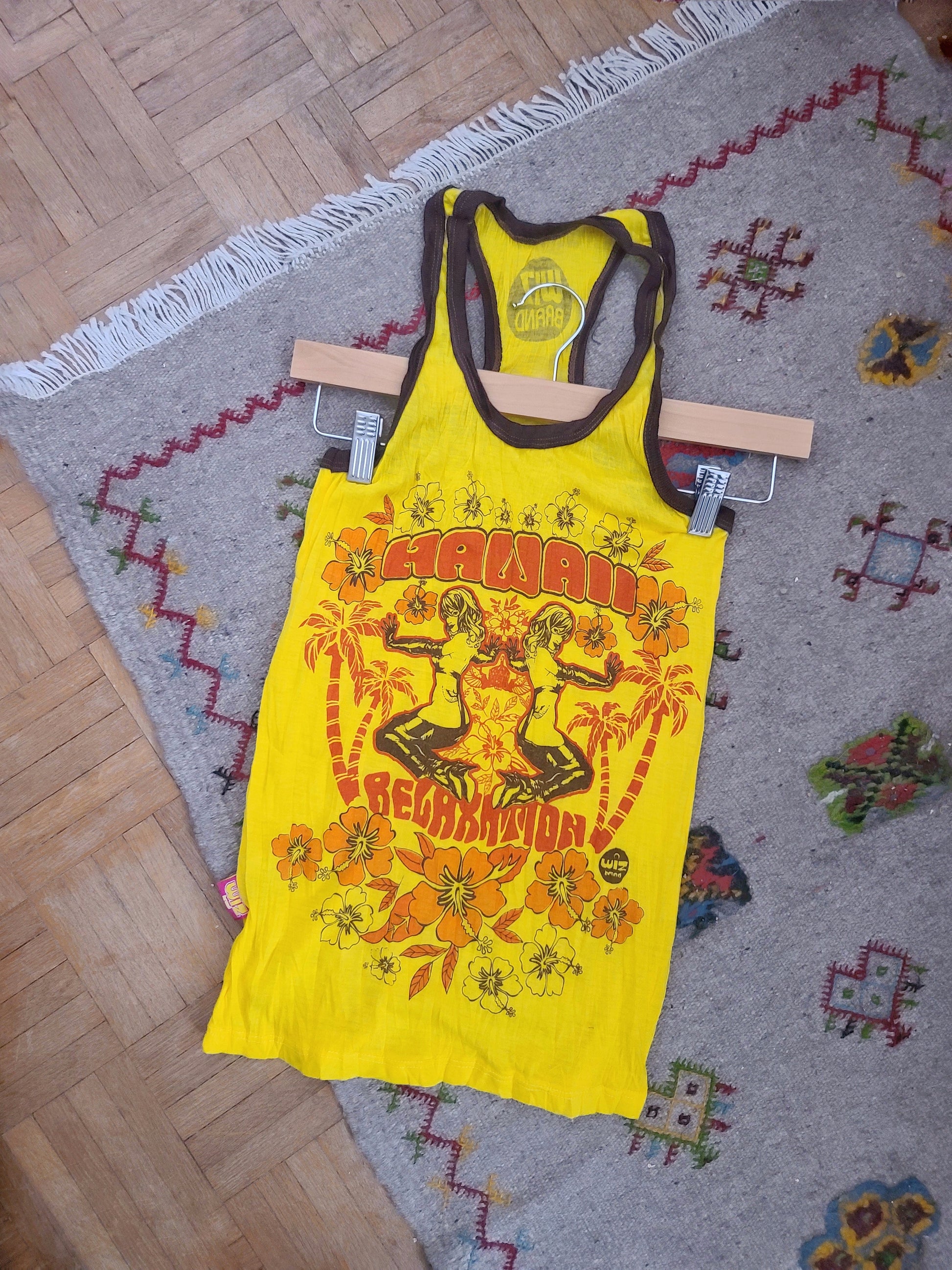 Beautiful yellow vintage tank top from the 90s with hibiscus print, beachwear