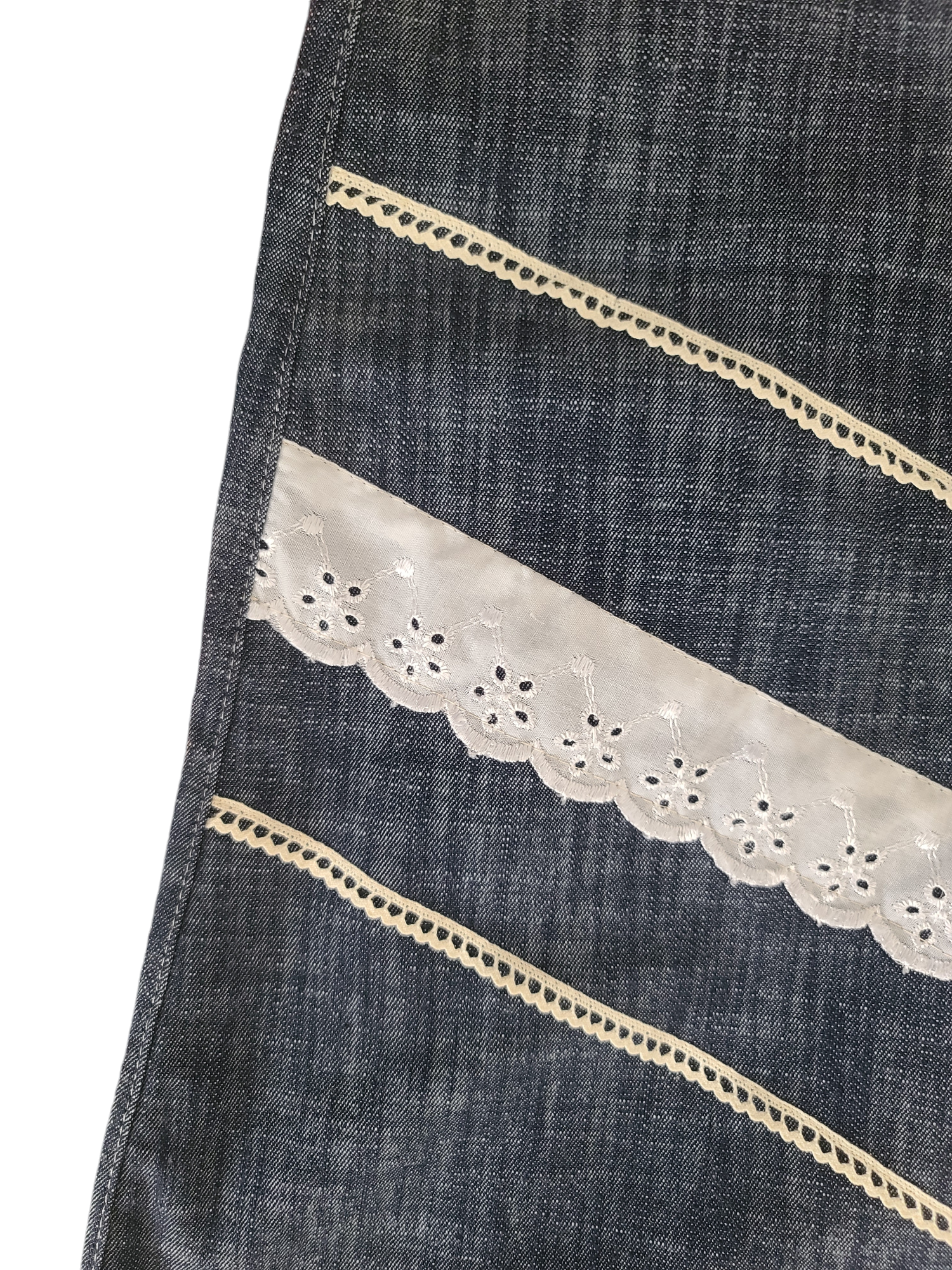 Very beautiful vintage denim skirt from the 90s, coquette style with lace details.