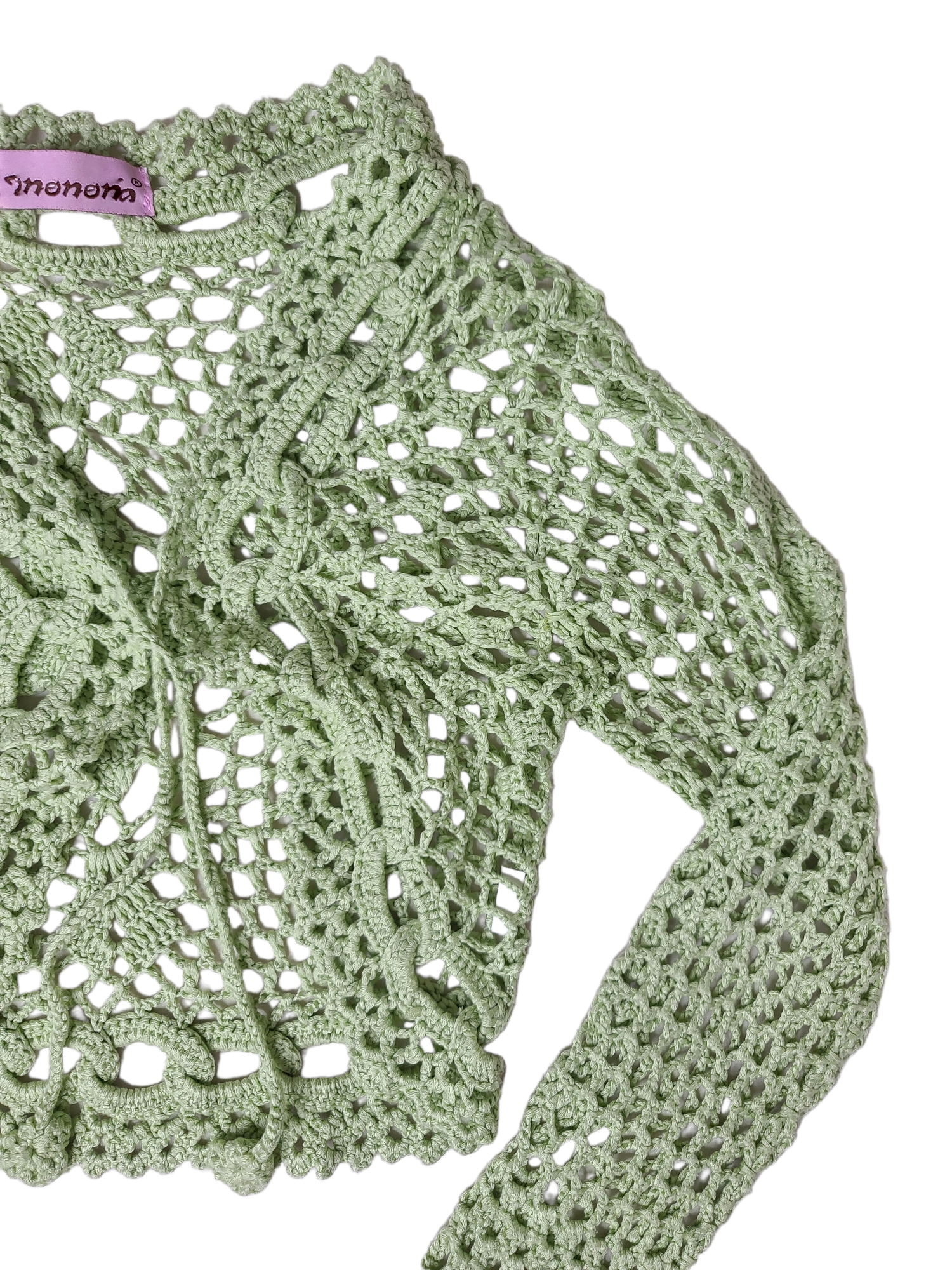Magnifique boléro crochet vintage y2k des années 2000 vert. Manches longues et larges, bohemian fairycore style.