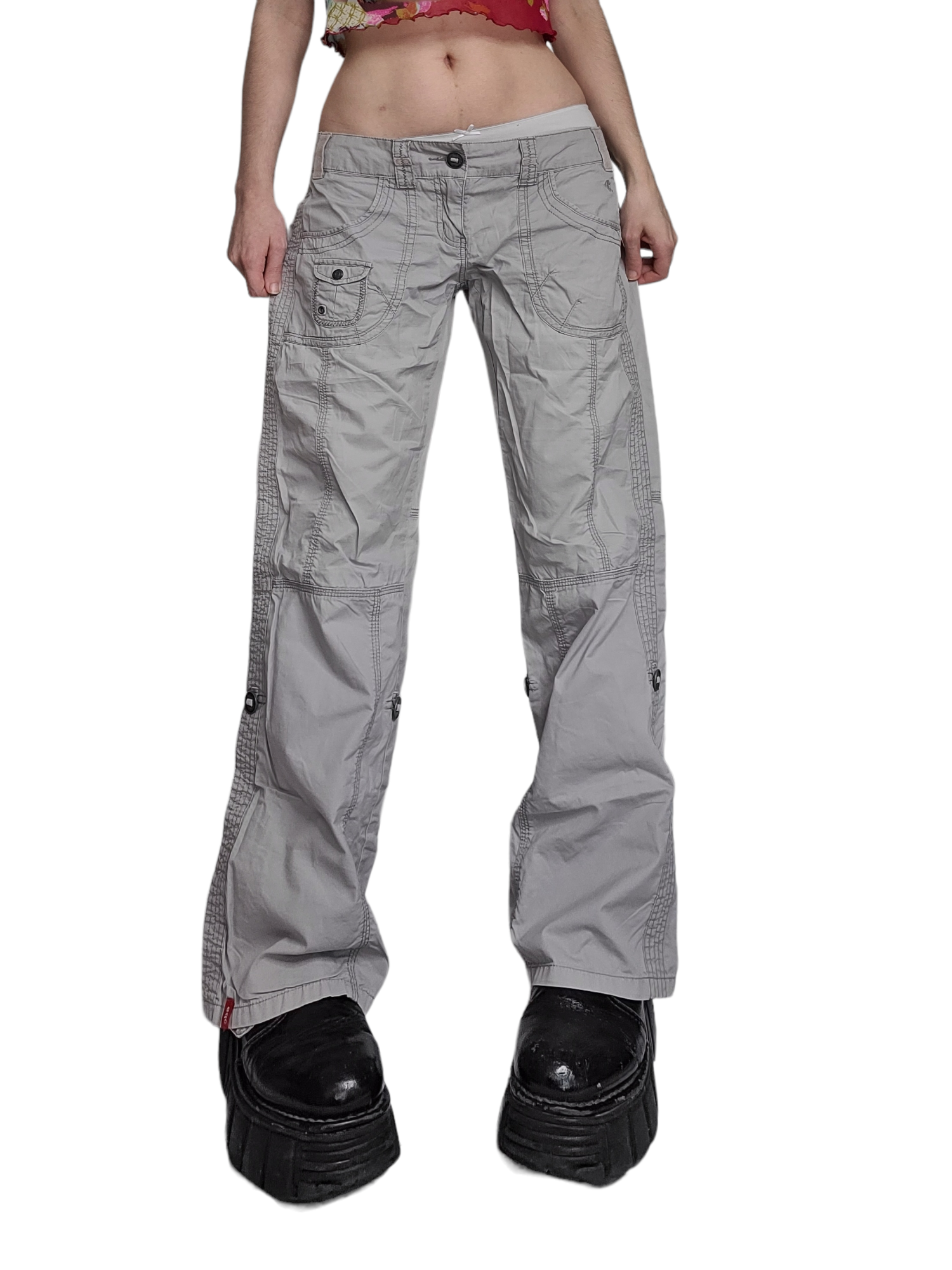 Magnifique cargo gris clair taille basse vintage des années 90 grunge, multipoches. Skater style.