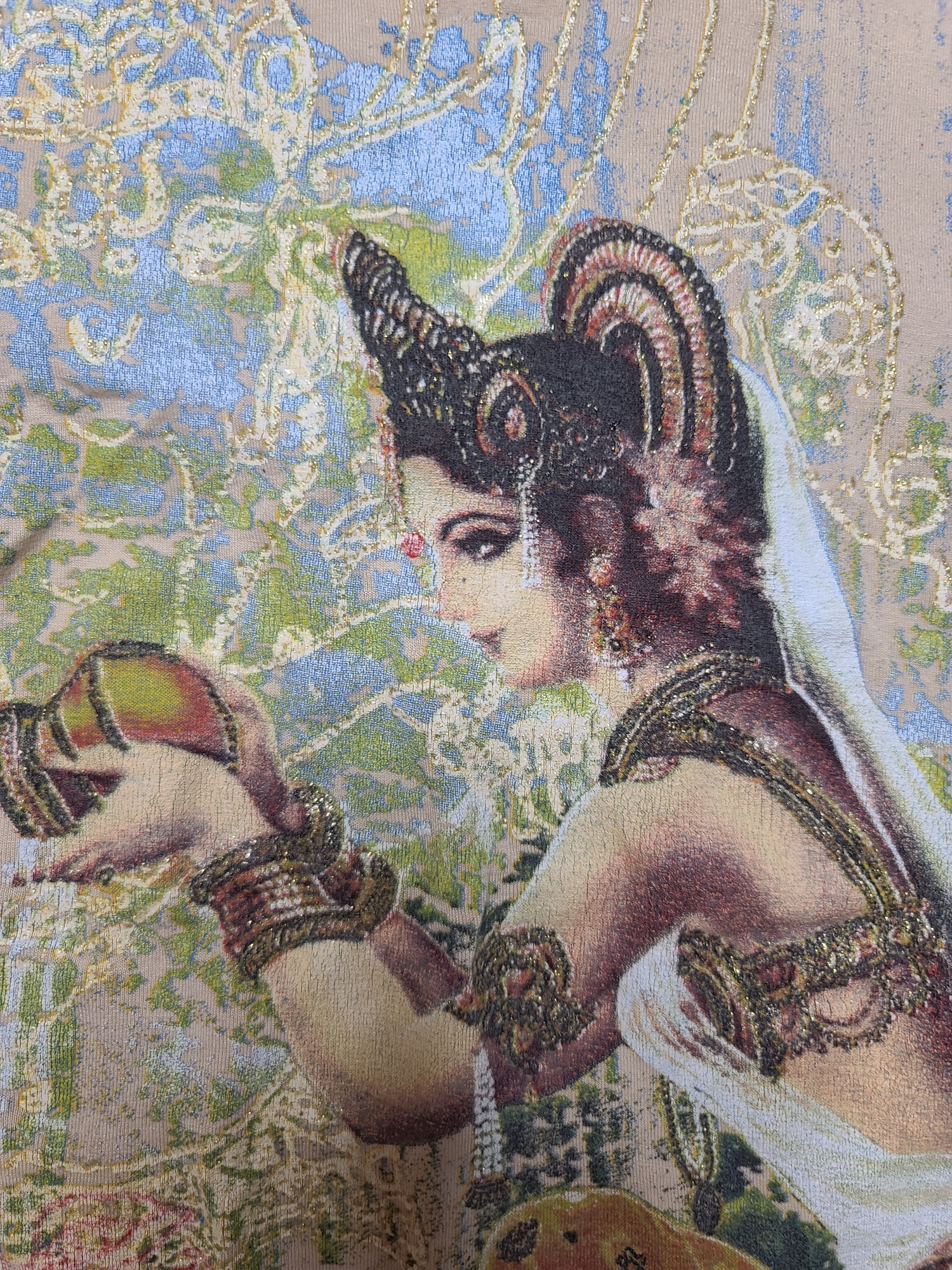 Incroyable top vintage taupe, imprimé des années 90, motif indienne. Archive rare.