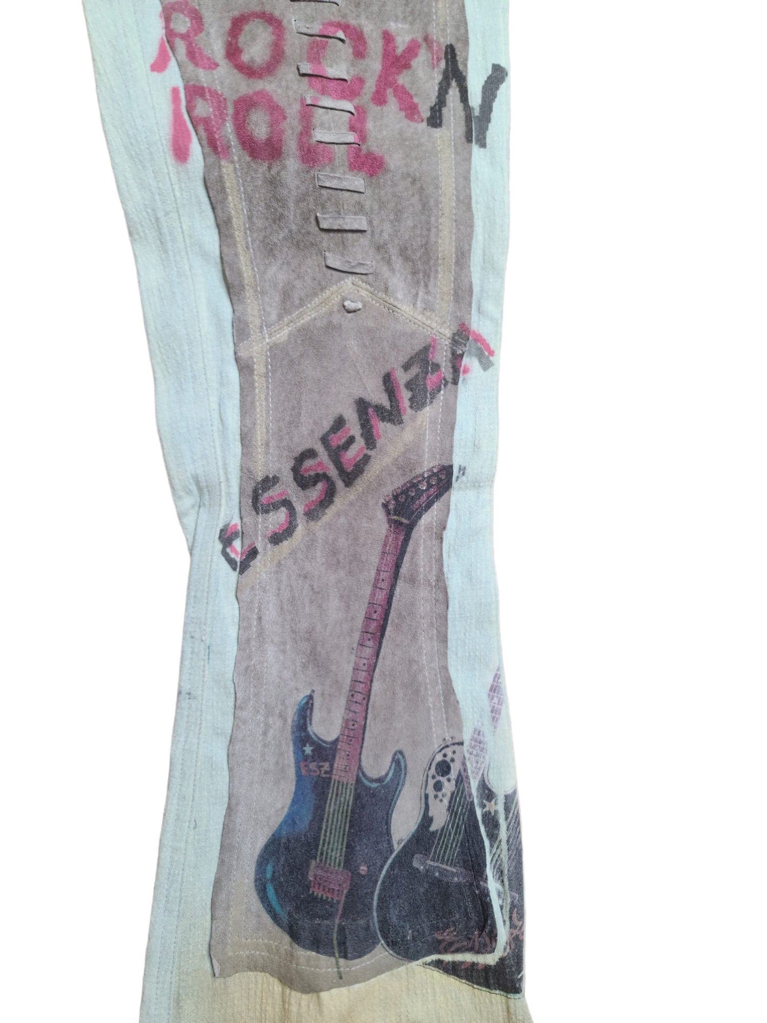 Incroyable jean flared unique cybergrunge archive, vintage jean destroy. Détails lacets, effet délavé, tags, printed text.