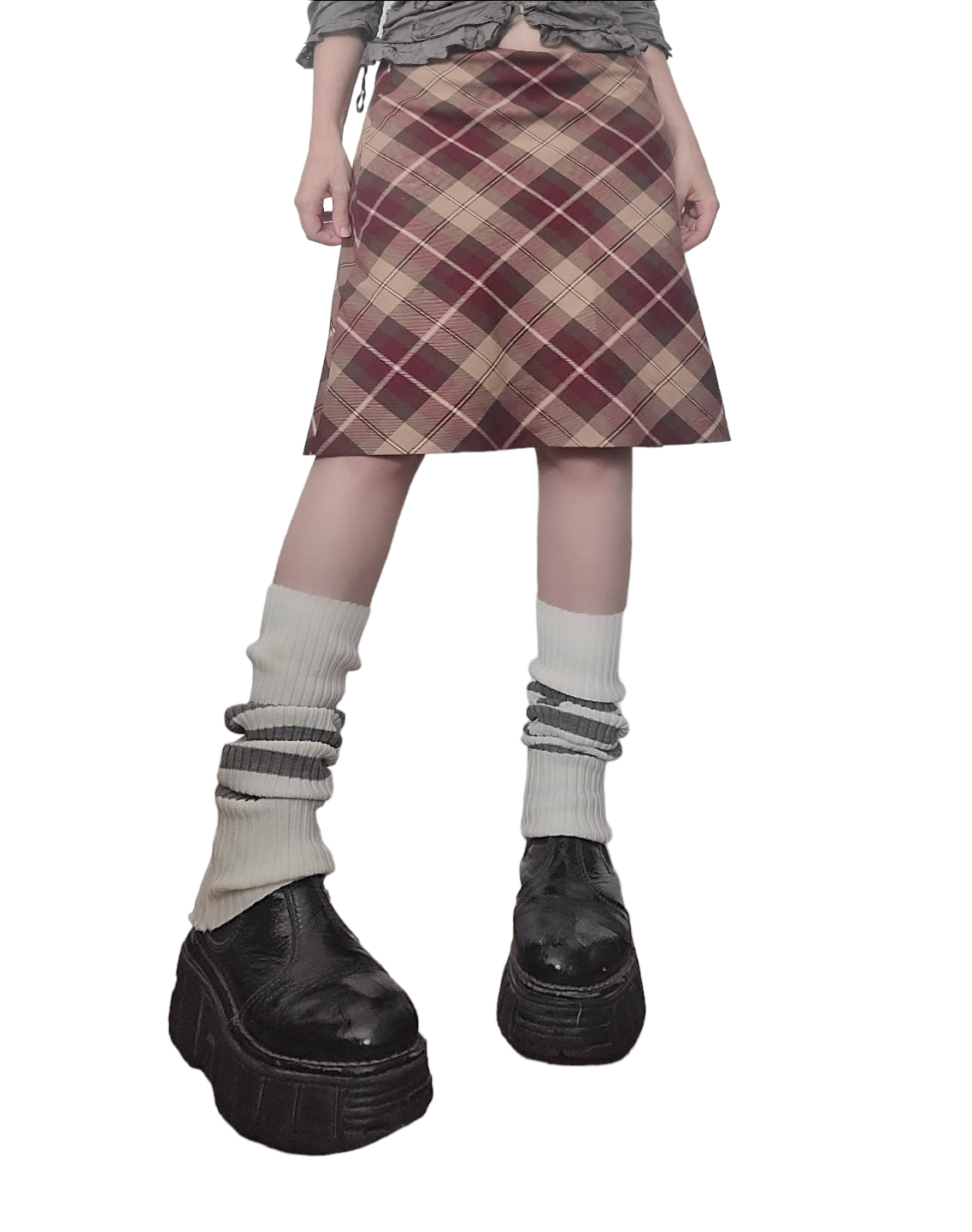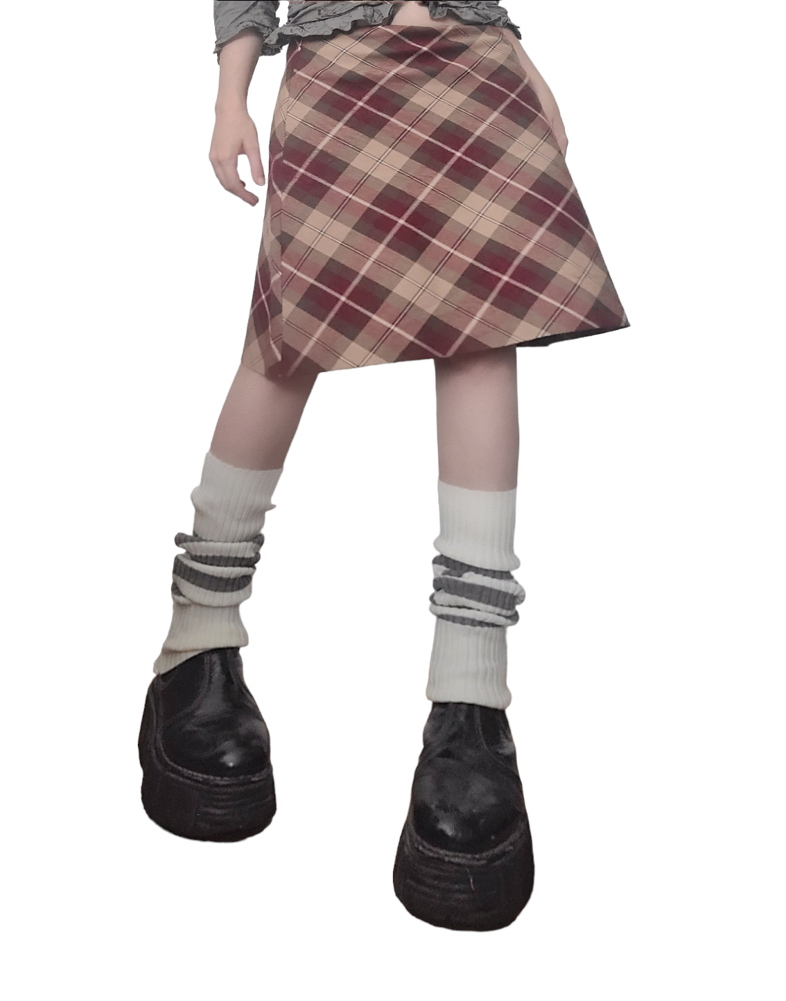 Very beautiful vintage skirt from the 2000s, y2k beige and burgundy tartan. Grunge style.