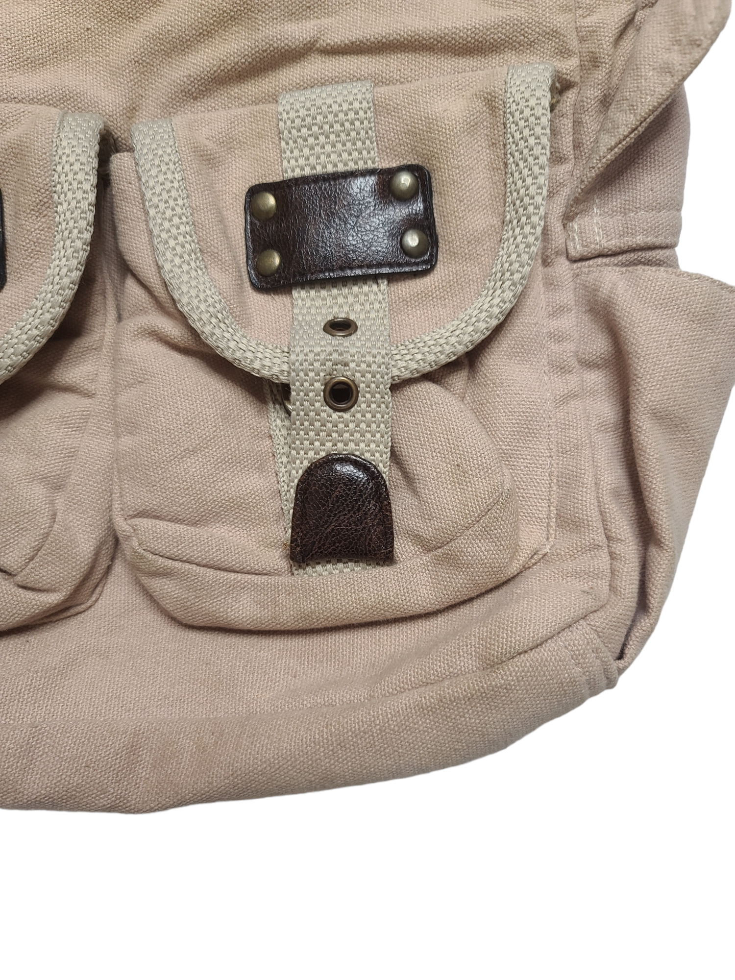 Très beau sac vintage gorpcore grunge cargo en bandoulière beige. Fermeture à sangles. Neutral style.