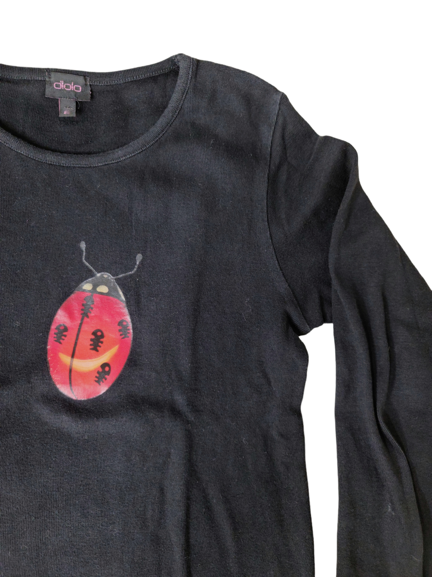Très beau top vintage à manches longues noir, cybery2k, imprimé archive, coccinelle. Dystopian style.
