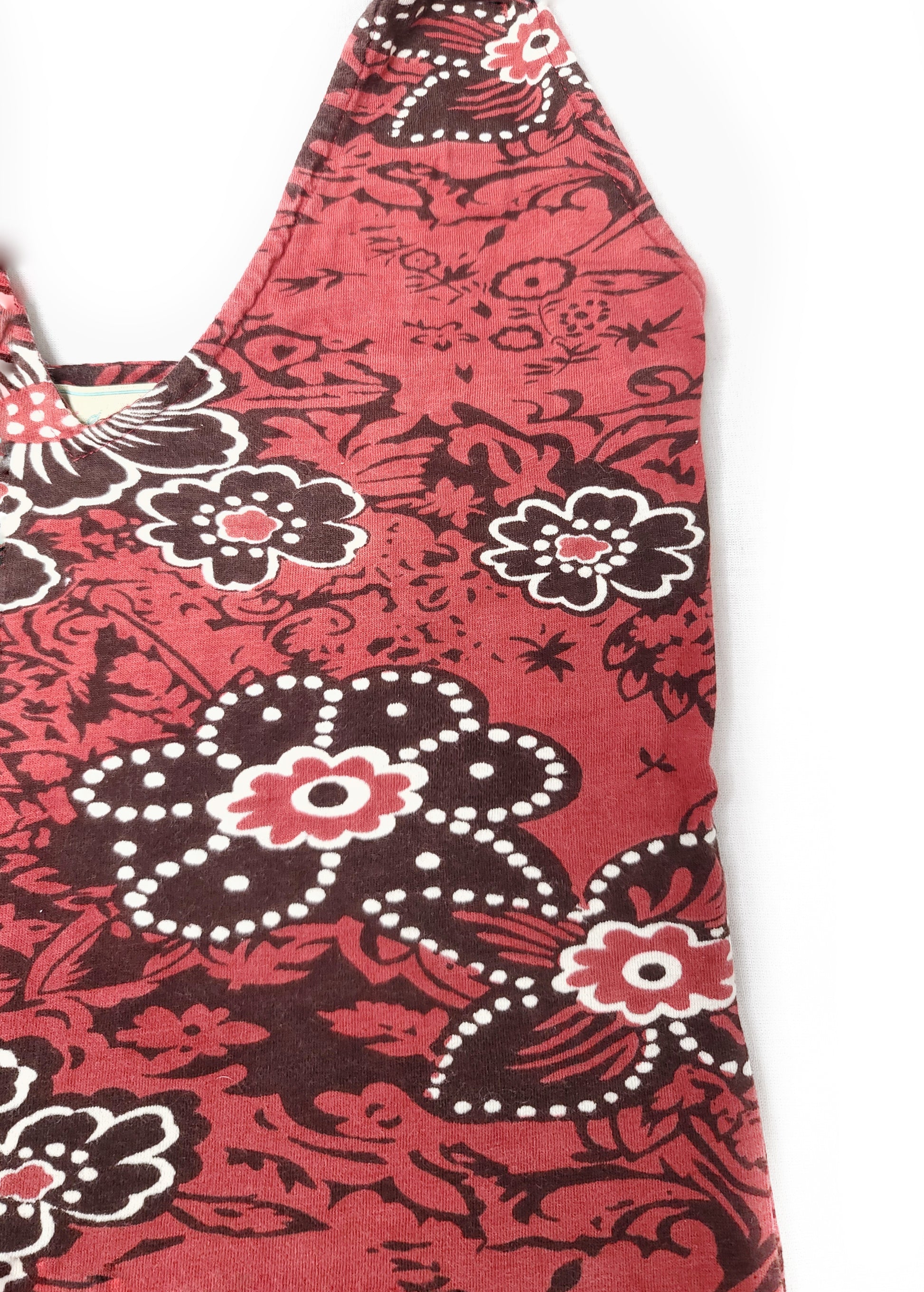 Beau top dos nu vintage des années 90s imprimé grunge à fleurs rouge et bordeaux.