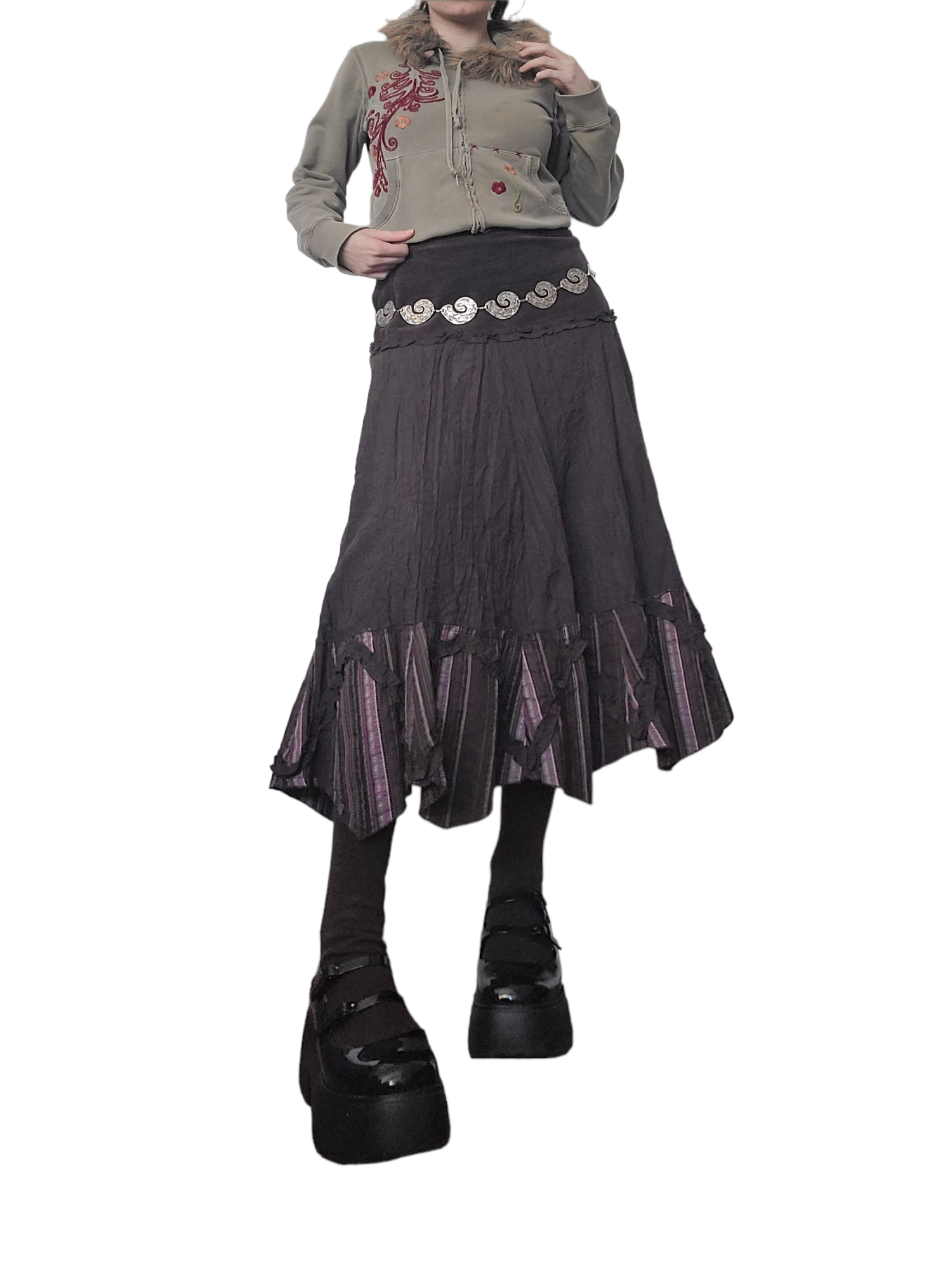 Very beautiful vintage skirt from the 2000s downtown, flirtatious style. Corduroy waist, crinkled effect, striped details and gathered elements.