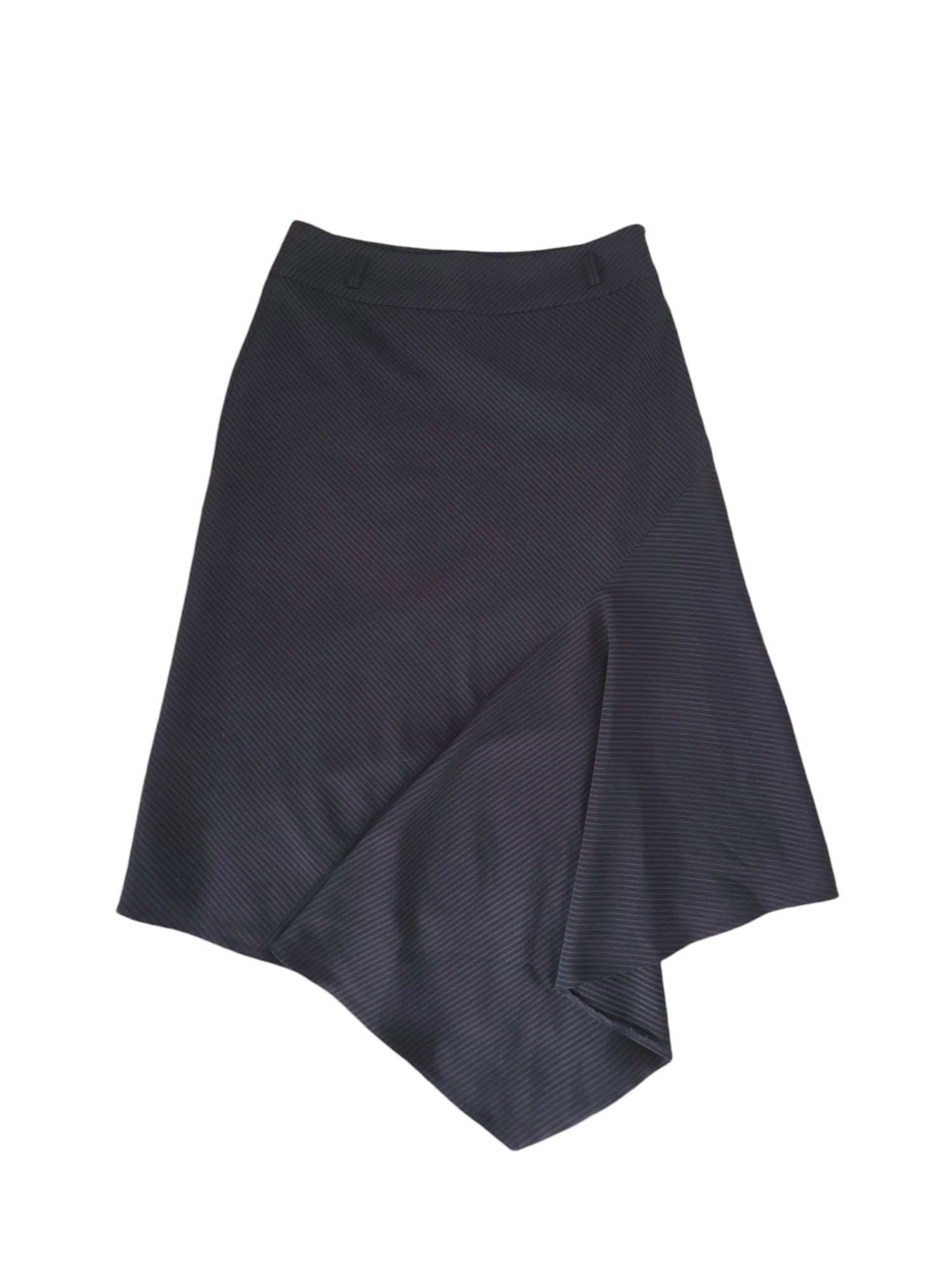 Gorgeous vintage black y2k office siren skirt with diagonal lines, asymmetrical cut.